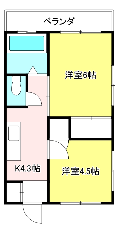 一人暮らしやカップル向けの2Kです。